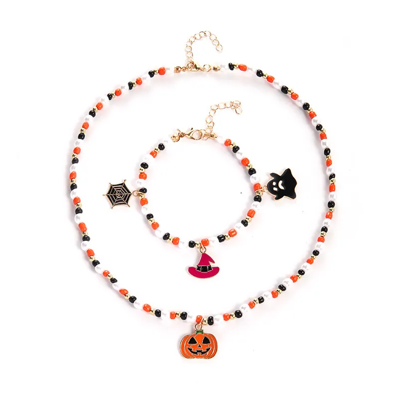 - Unique Designs: The ghost pumpkin necklace features a playful ghost alongside a vibrant pumpkin, while the horror bracelet showcases eerie charms that capture the essence of Halloween.