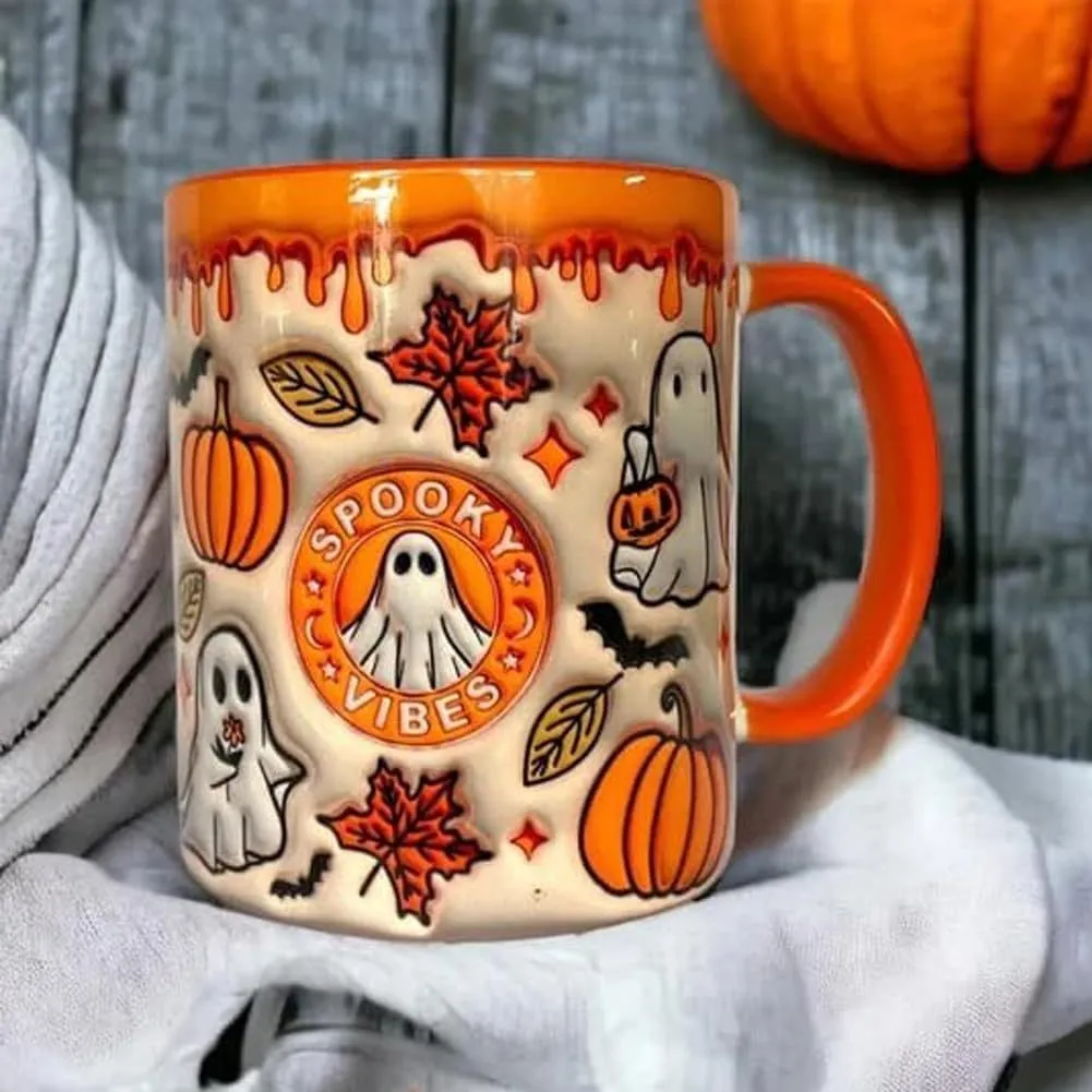 Embrace the spooky season with the Halloween Pumpkin Ceramic Coffee Mug, a festive and charming addition to your Halloween celebrations. This delightful coffee mug features a pumpkin-inspired design, complete with a classic jack-o’-lantern face that adds a playful, spooky touch to your morning coffee or evening tea. Crafted from high-quality ceramic, it offers durability and a smooth, glossy finish that feels great in your hands. The mug’s generous size is perfect for holding your favorite hot beverages, from coffee and tea to hot cocoa, making it an ideal companion for cozy autumn mornings or late-night Halloween movie marathons.