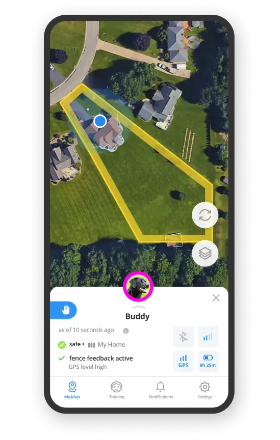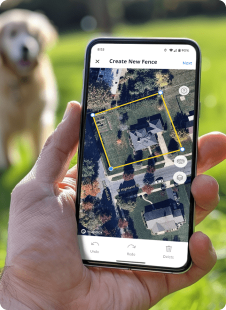 Create and manage wireless GPS fences right from the Halo app, which protects your dog at home or on-the-go!