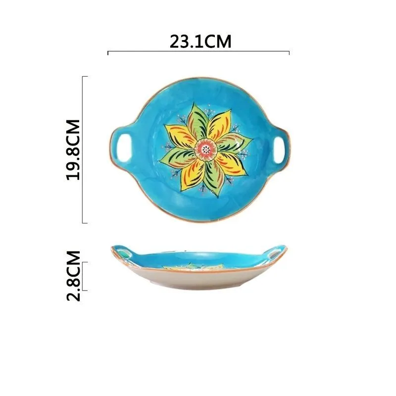 Unlike mass-produced items, our hand-painted embossed double ear discs are made with utmost care, ensuring an authentic, high-quality finish. The attention to detail and craftsmanship set them apart from other decorative and serving pieces available in the market.