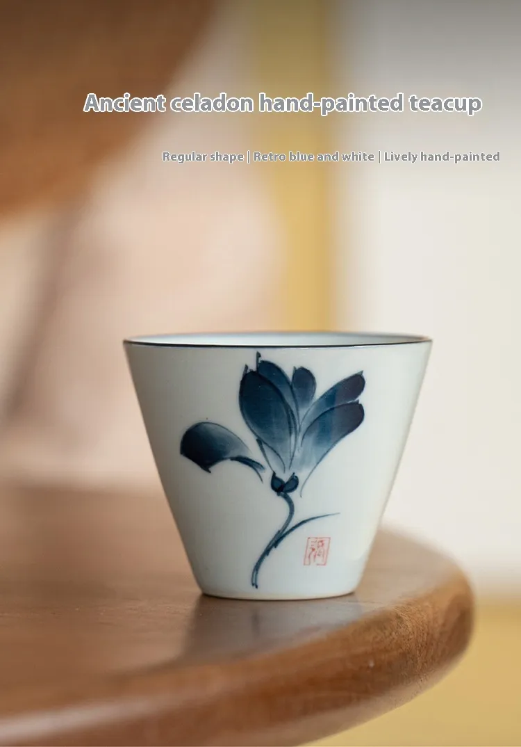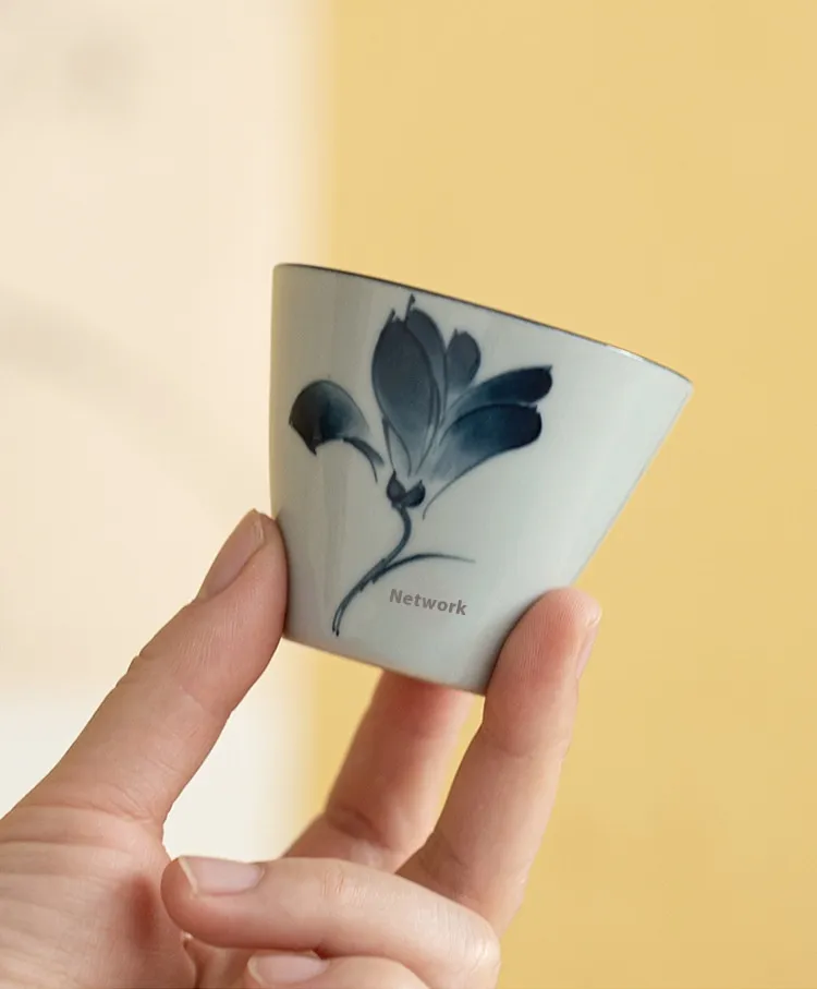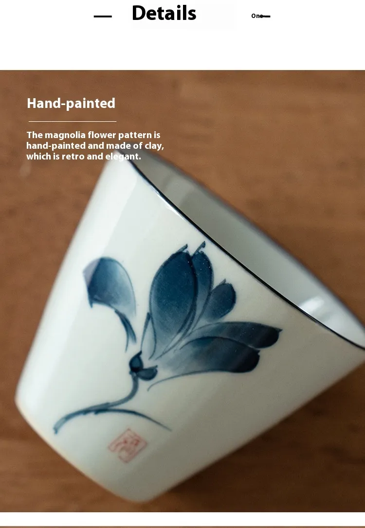 Color: ancient blue white tea cup-magnolia-bamboo-hat Cup, ancient blue white tea cup-Magnolia Cup