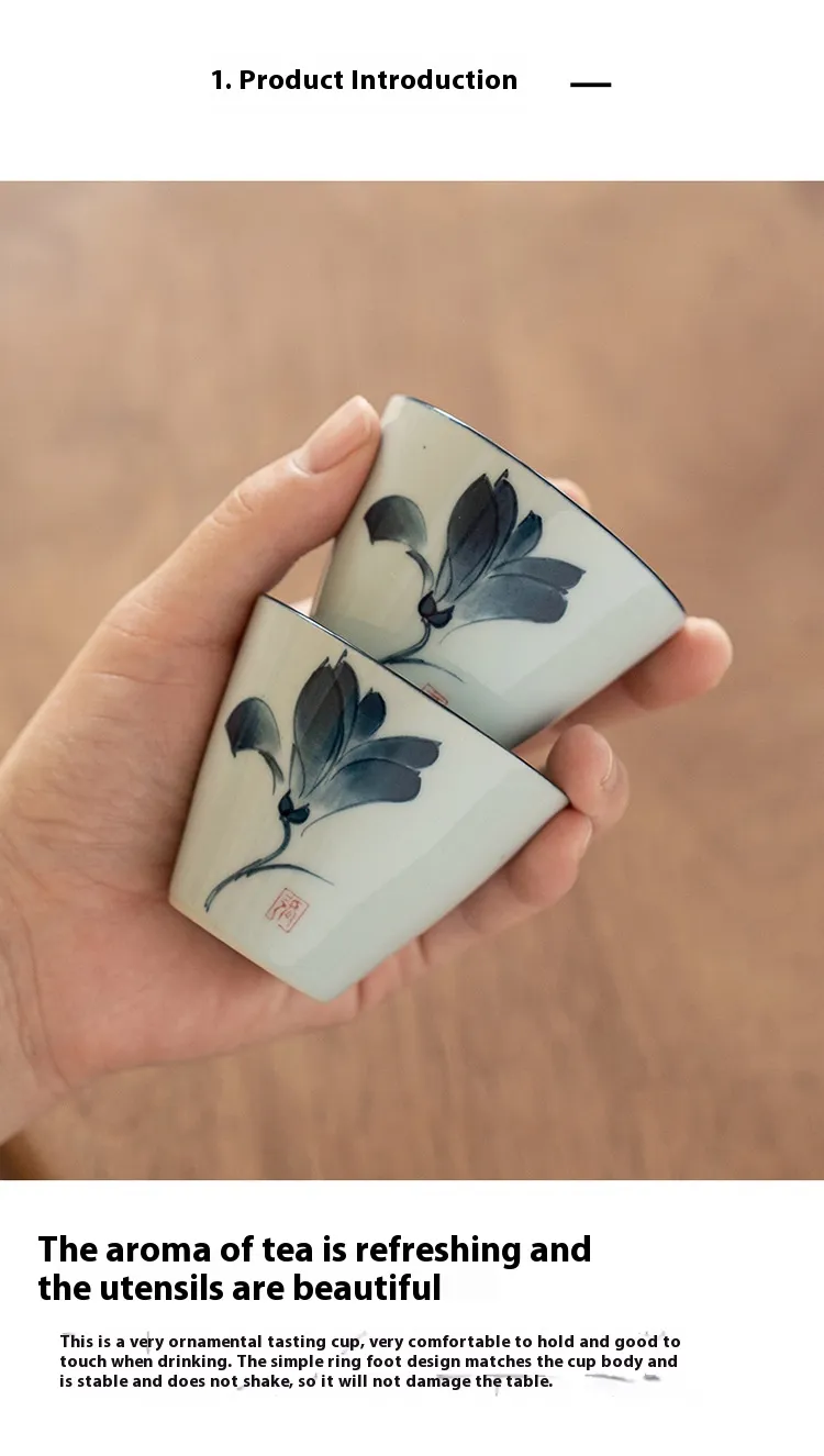 Crafted with meticulous attention to detail, this teacup features a classic blue and white design reminiscent of traditional Chinese porcelain. The hand-painted motifs showcase intricate patterns, adding a touch of artistry to your tea-drinking experience. With a capacity of approximately 50ml, it is perfectly suited for tea tasting sessions, allowing you to savor the nuances of your favorite teas.