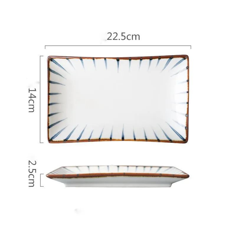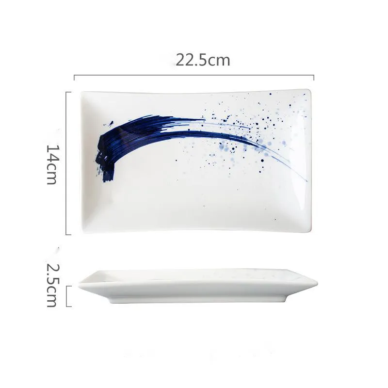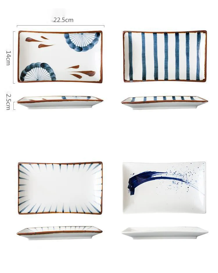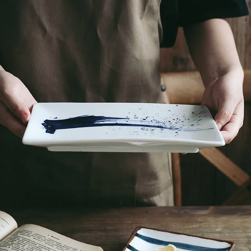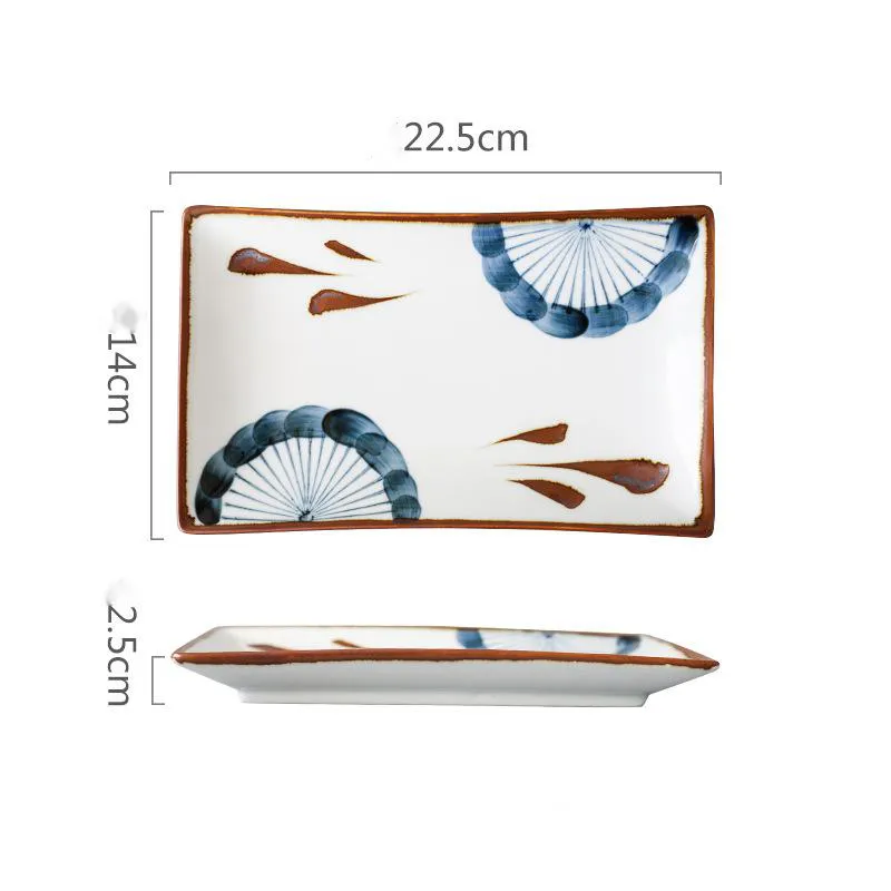 Hand-painted Japanese Style Retro Hand-painted Ceramic Sushi Plate Rectangular Plate