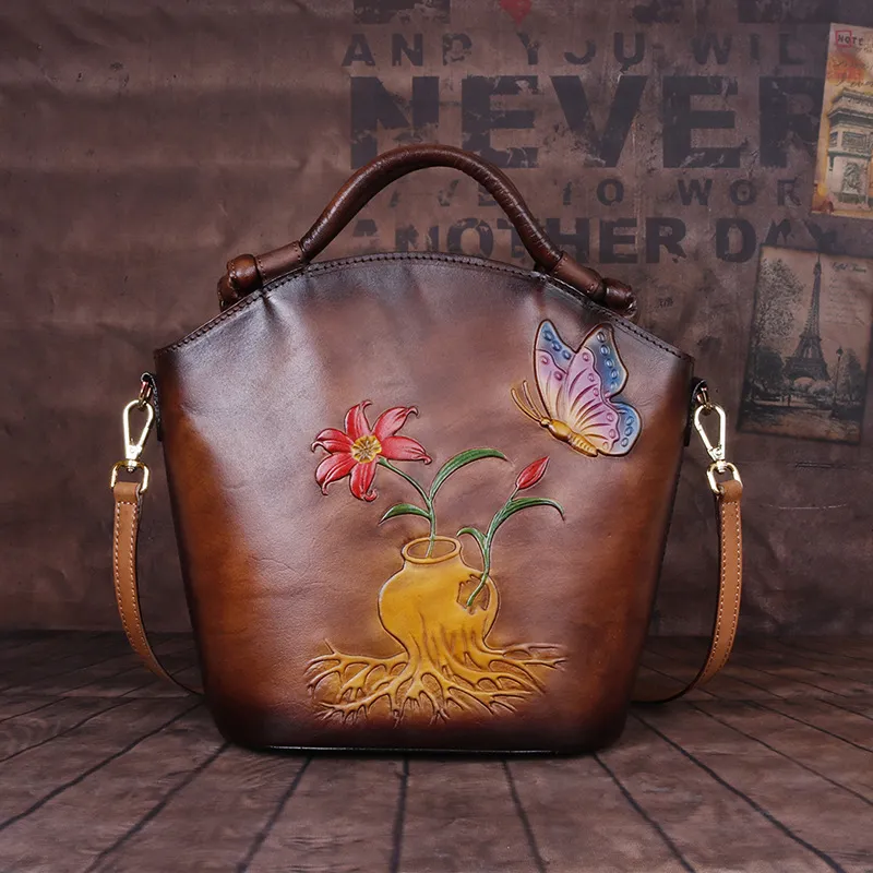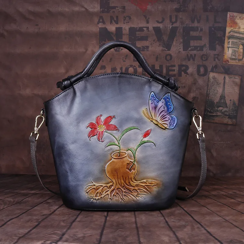 Hand painted one shoulder straddle Bucket Bag