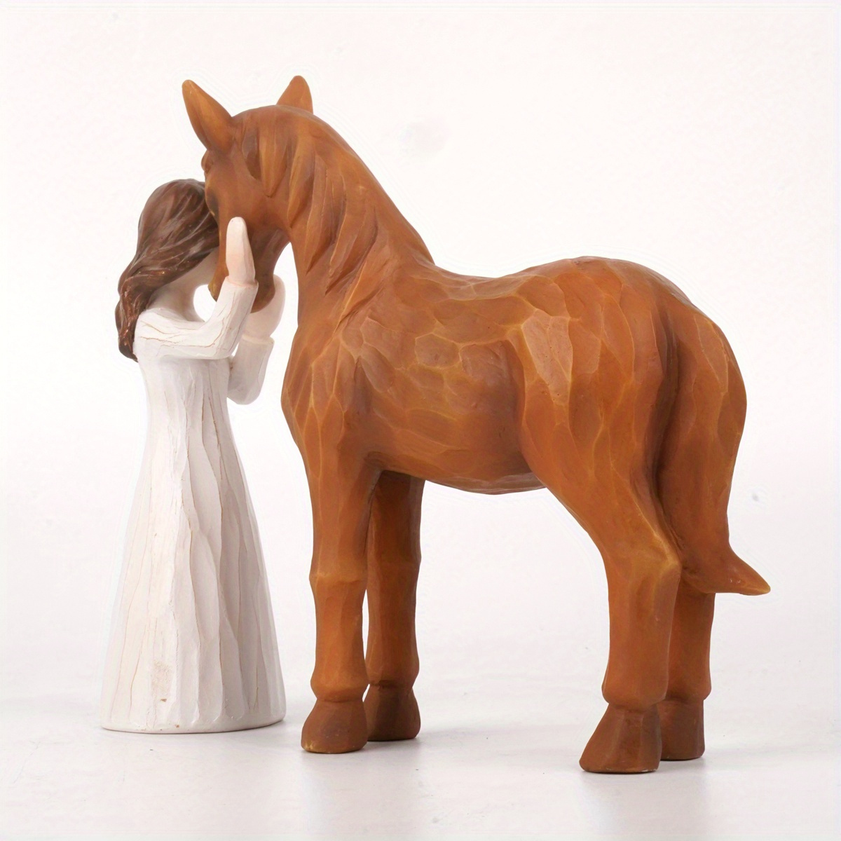 Hand-Painted Resin Horse and Girl Figurine - Equestrian Enthusiast Collectible, Sculpted ABS Figure for Horse Lovers, Ideal for Collectors Aged 14+, Durable Mixed Color Horse Decor, Memorable Gift for Women and Girls