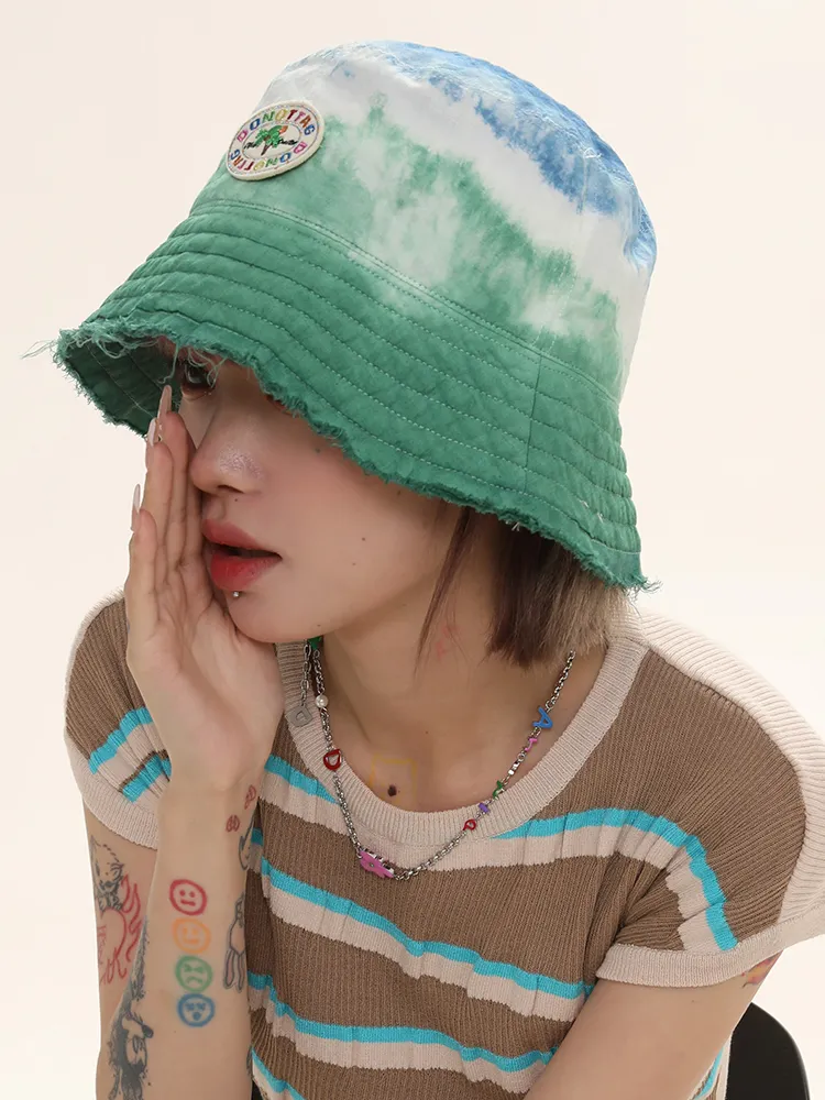 Hand Tie-Dye Contrast Gradient Bucket Hat