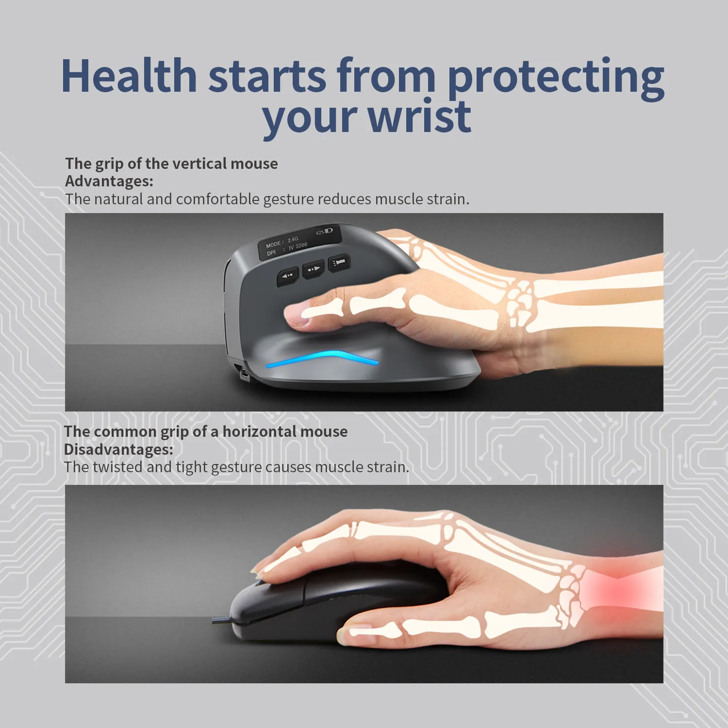 The Handheld Display Bluetooth Wireless Charging Dual-Mode Grip Vertical Mouse is a high-tech, ergonomic solution designed for modern professionals and tech enthusiasts. Its unique features, including the vertical grip, dual-mode connectivity, and wireless charging, make it a standout choice for anyone looking to optimize their computing experience while reducing strain. Whether you're using it for work, gaming, or casual browsing, this mouse will meet all your needs with ease and precision.