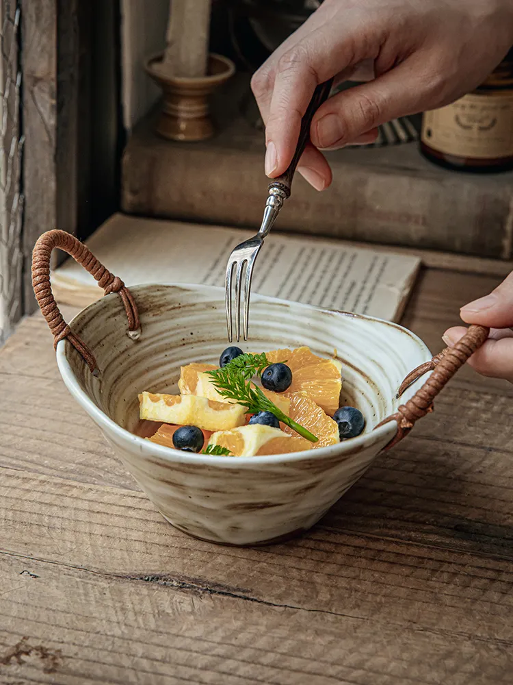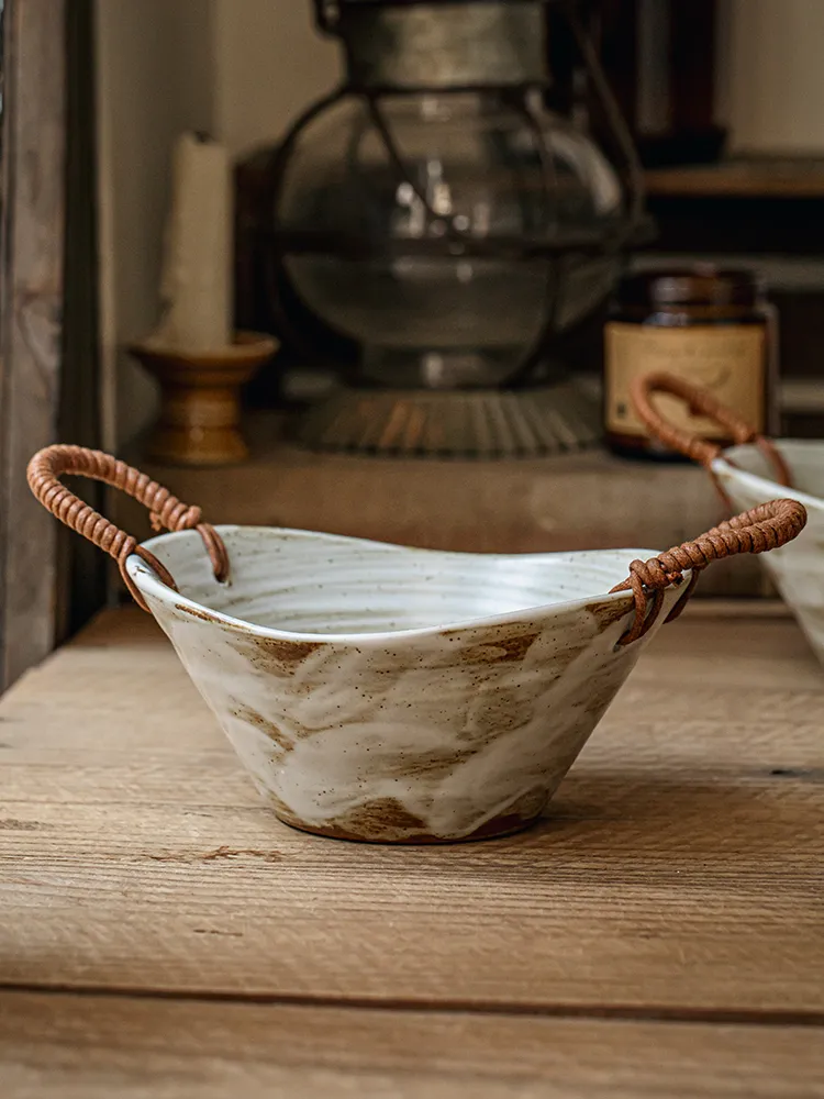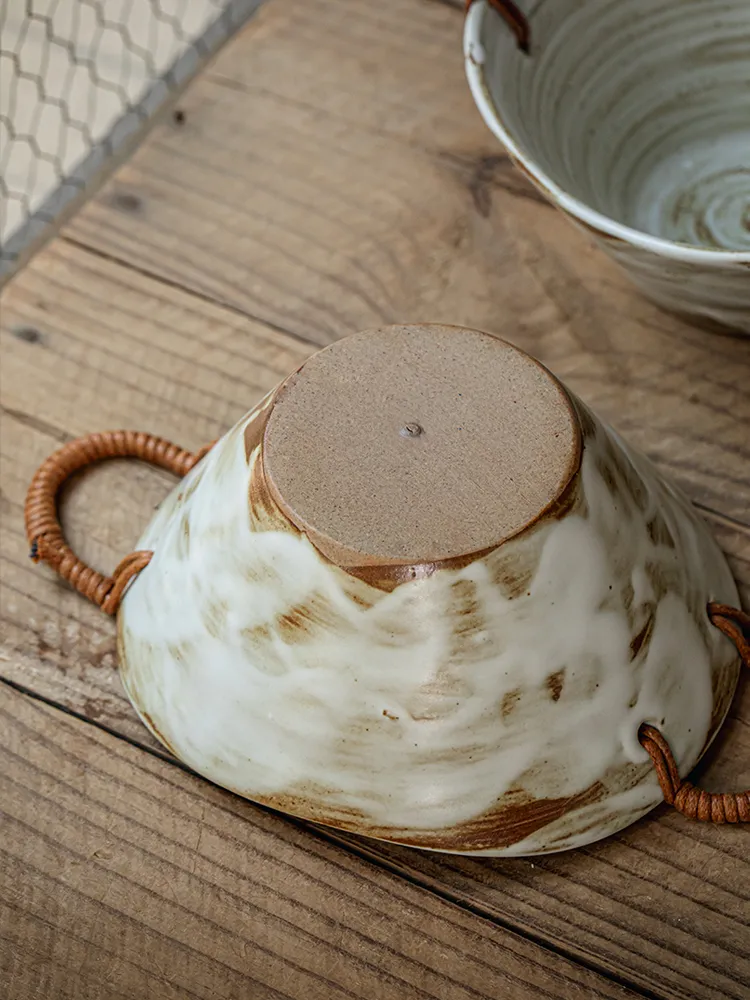 Handmade Coarse Pottery 6-inch Double-ear Bowl