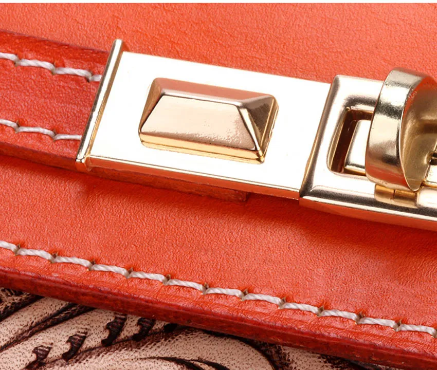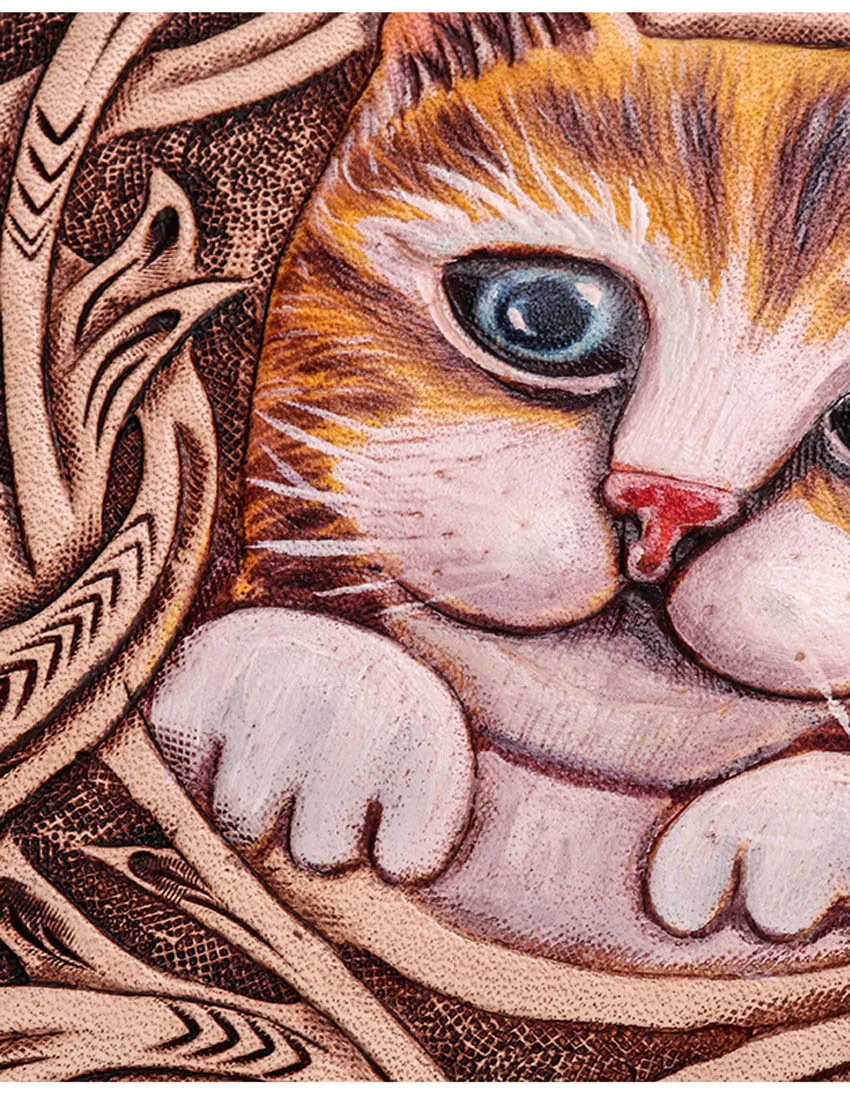 Handmade First Layer Cowhide Engraved Cat Handbag