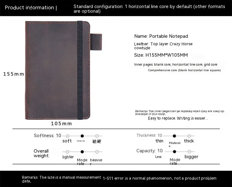 Cover color: dark green, black, brown, coffee color, Burgundy, Blue