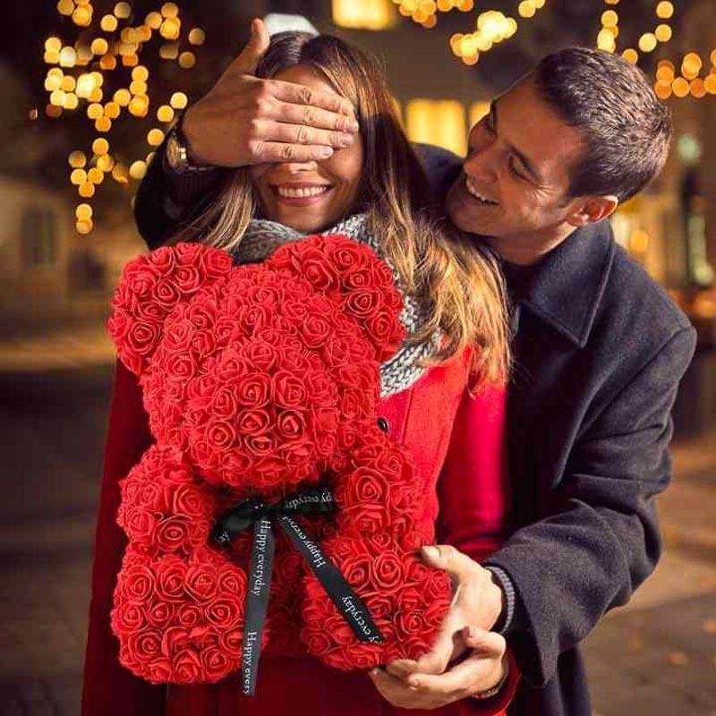 - 👩â€â¤â€ðŸ’‹â€ðŸ‘¨Give the lady you love a gift made of roses 🌹that will last forever! A gorgeous decorative teddy bear made of soft synthetic roses in a romantic red color.