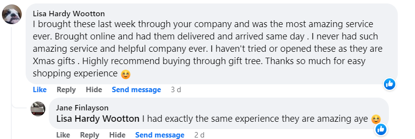 Summary: Gift Tree NZ is highly recommended by its customers for its exceptional service, quality products, and personal touches that add to the overall shopping experience. Whether it's the speed of delivery, the hand-written notes, or the genuine care shown by the business owners.