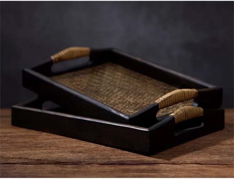 Handmade Wooden Retro Dinner Plate With Handle Water Breakfast Plate Kitchen Tea Tray Tea Set