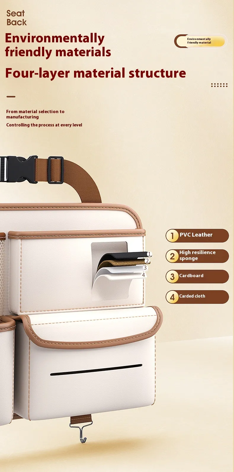 Crafted from high-quality, durable materials, this storage bag is built to withstand regular use while keeping your car’s interior looking neat and stylish. With multiple pockets of varying sizes, including mesh pockets for visibility and secure zippered compartments, this seat back organizer offers optimal organization for any journey. It attaches easily to the back of most car seats, with adjustable straps that ensure a secure, slip-free fit.
