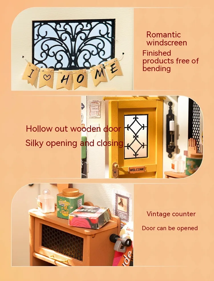 - Miniature Appliances: Includes a stove, oven, sink, and refrigerator.