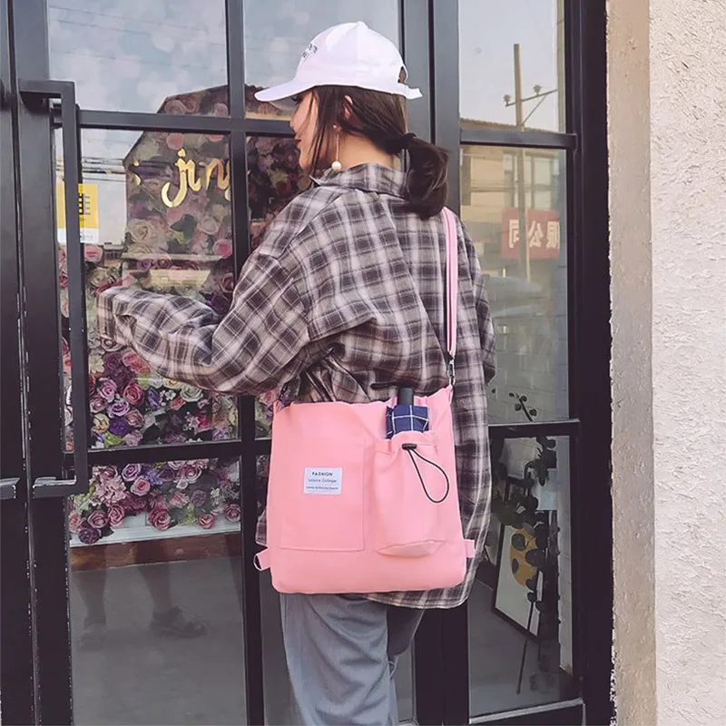 Introducing the Harajuku Canvas Bag, a perfect blend of fashion and function for students and women on the go. This versatile handbag with pockets is designed with a preppy backpack style that combines trendy Harajuku-inspired aesthetics with practical features. Whether you're heading to school, work, or a casual outing, this canvas bag is the ultimate accessory for keeping your essentials organized in style.