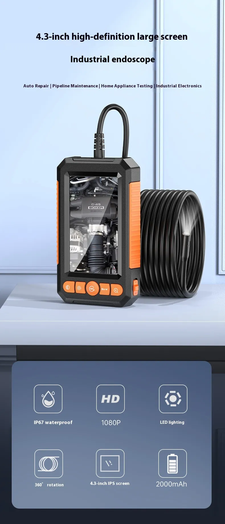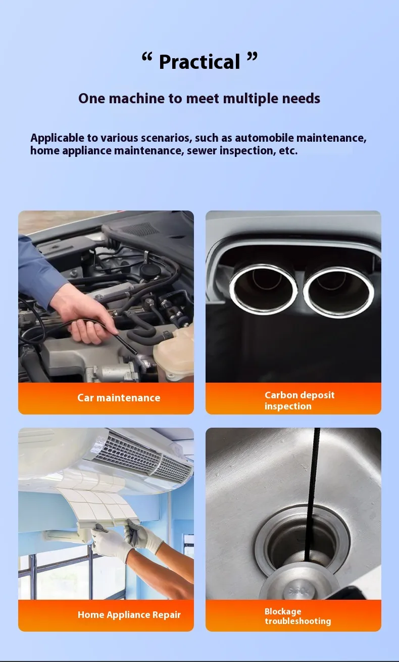 Equipped with an HD camera, this endoscope delivers crystal-clear visuals, enabling precise inspection of engine compartments, exhaust systems, and other intricate automotive areas.