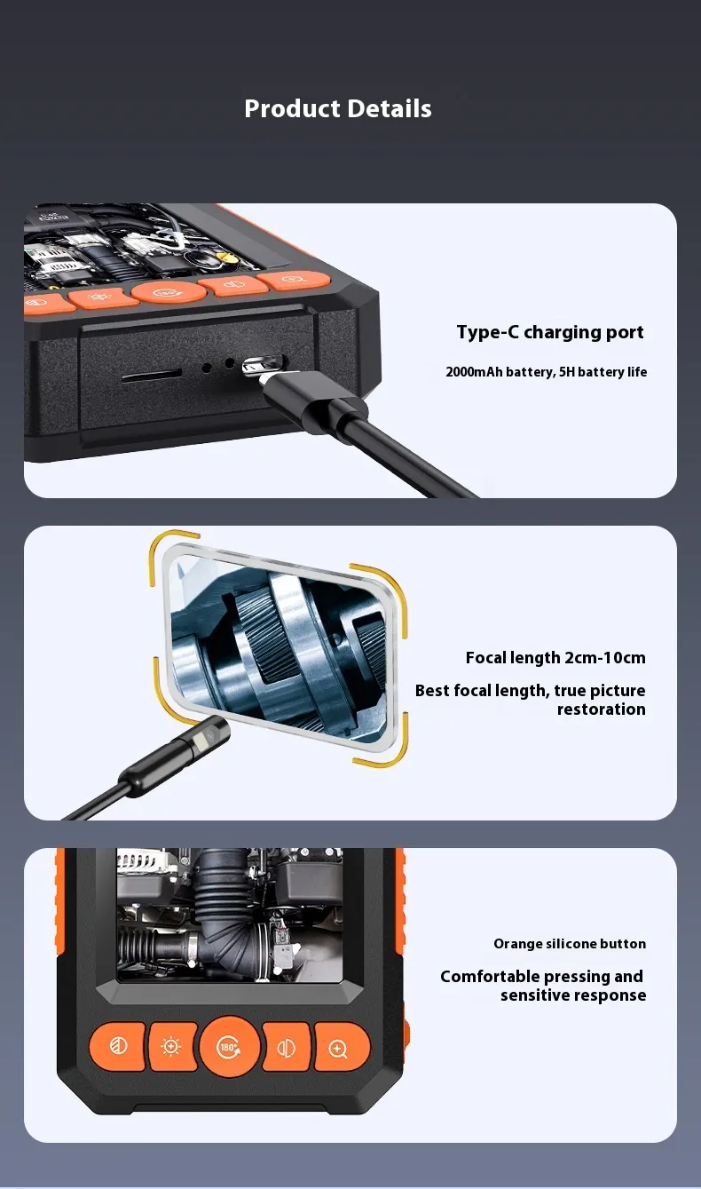 The HD Portable Endoscope with Screen Automotive Testing Instrument is a versatile and efficient tool designed to enhance diagnostics and maintenance in the automotive industry and beyond. With its advanced imaging capabilities, user-friendly features, and durable construction, it’s the perfect solution for professionals and DIY enthusiasts alike. Invest in this essential tool today and experience the difference.