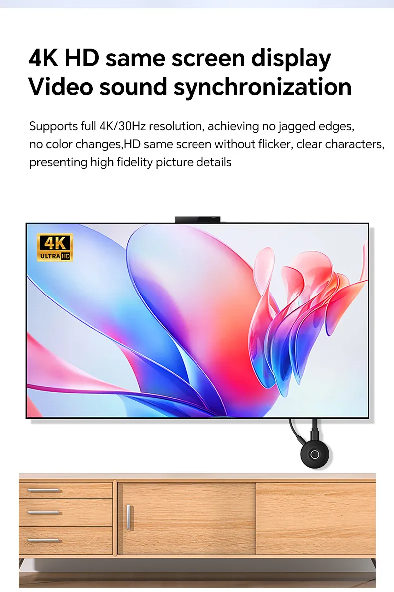 The HDMI Wireless 4K Transmitter supports 4K resolution at 60Hz, ensuring that your content is displayed with the highest quality on compatible 4K projectors, TVs, or monitors. Whether you're streaming movies, sharing presentation slides, or showcasing creative projects, you can expect ultra-clear video with vibrant colors, sharp details, and smooth motion. Enjoy a premium viewing experience with 4K clarity, making it the ideal choice for users who demand top-tier video performance.