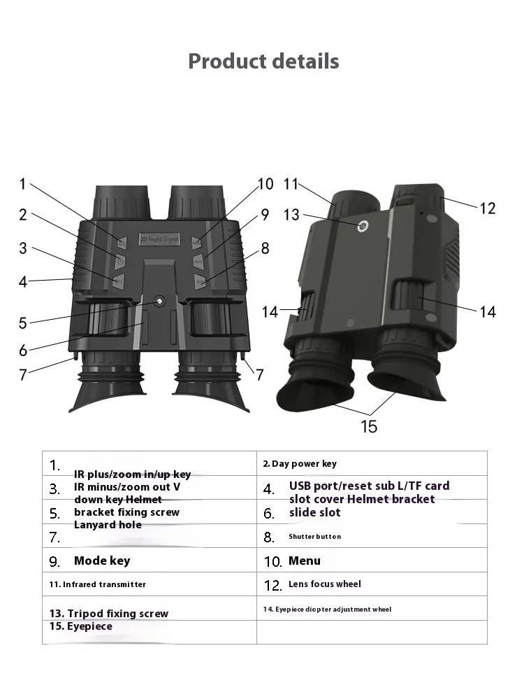 Never worry about losing power in the middle of your adventure. Our night vision goggles are equipped with a rechargeable lithium-ion battery, ensuring long hours of uninterrupted operation.