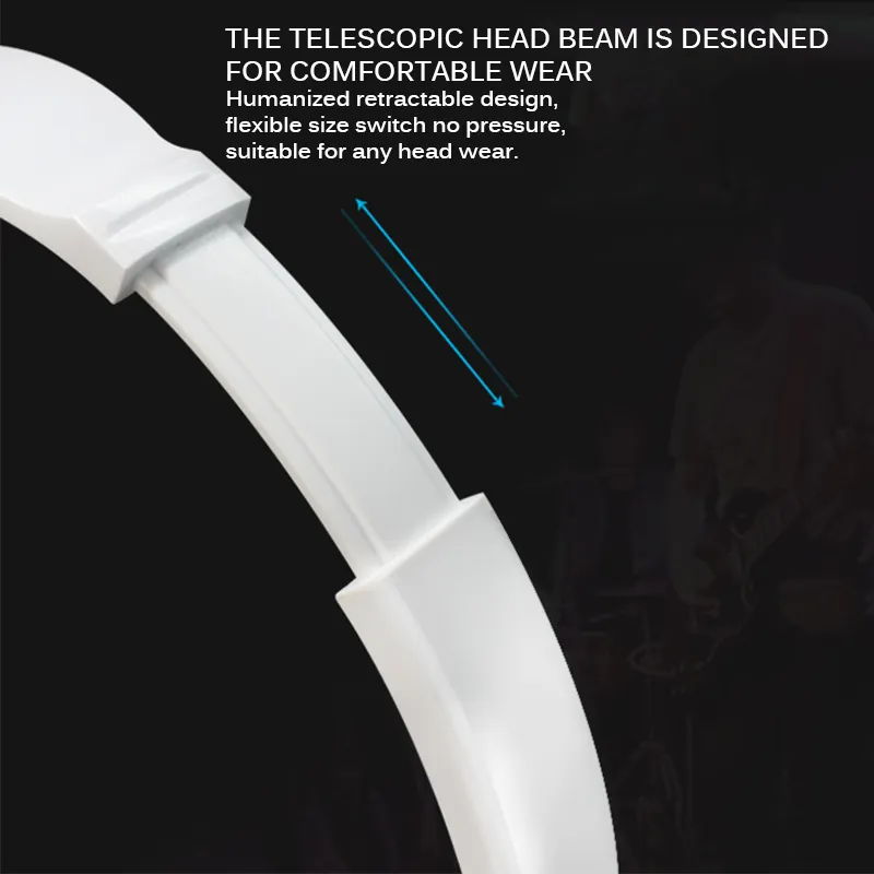 The telescopic main beam is designed to be flexible in size, suitable for any head shape and comfortable to wear.