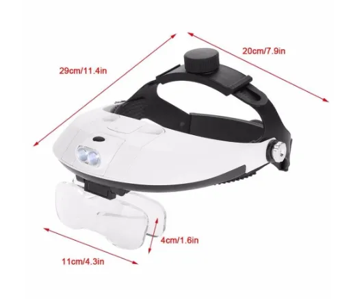 The Headband Magnifier with LED Light is a versatile tool designed to assist with detailed tasks such as reading small print, crafting, soldering, and other close-up work. This hands-free magnifying headset provides clear magnification and illumination, ensuring precision and reducing eye strain during extended use.​