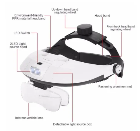Designed to be worn on the head, this magnifier allows for hands-free operation, enabling you to perform tasks with both hands while maintaining clear vision.​