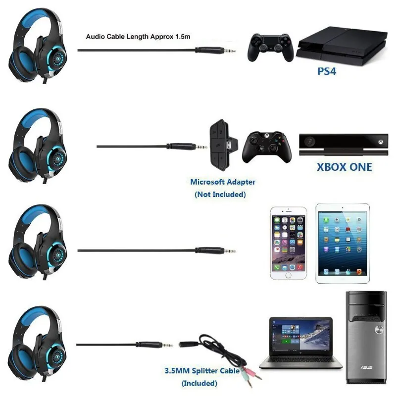 Beexcellent Stereo Gaming Headset Casque Deep Bass Stereo Game Headphone with Mic LED Light for PS4 Phone PC Laptop Gamer