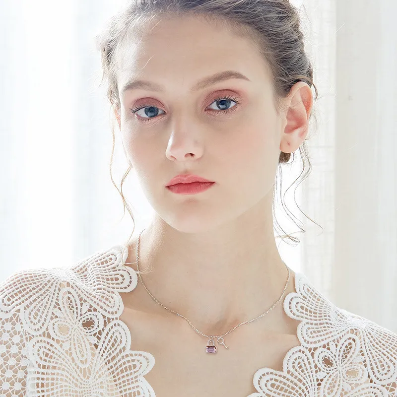 Heart lock key pendant clavicle chain