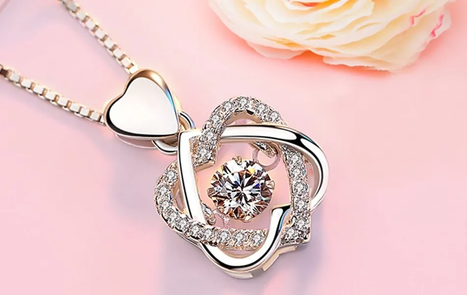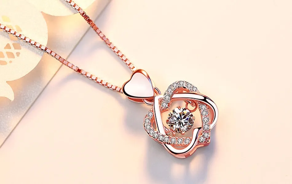 Heart Necklace Female 925 Silver Plated Rose Gold Pendant