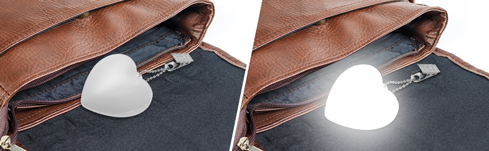 The heart shape purse lights have a hook, you can easily clip it to your handbag or purse, as a special decoration during the day