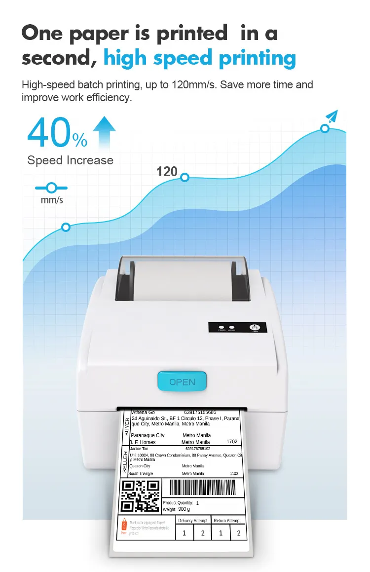 The heat-sensitive technology in this printer means there’s no need for ink or toner. Instead, the printer uses thermal printing to produce crisp, clear labels by heating special thermal paper. This results in clean, professional-quality prints that are ideal for shipping labels, barcode tags, product labels, and more. The heat-sensitive technology also means fewer consumables and reduced maintenance, saving you time and money.