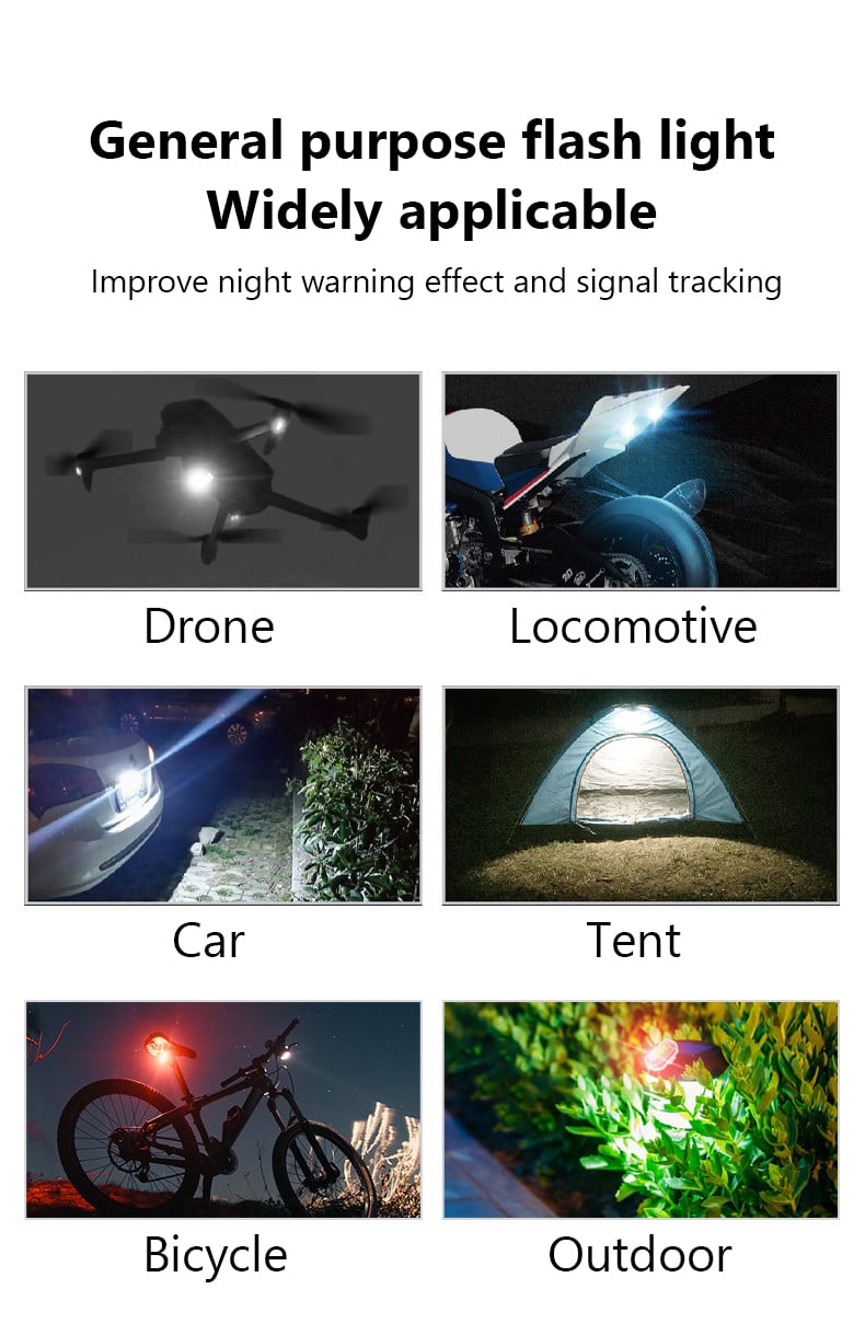 Wide Applications: The strobe light can be used for RC car, RC boat, E-bike, dirt bike, camping, fishing, hiking, truck emergency.