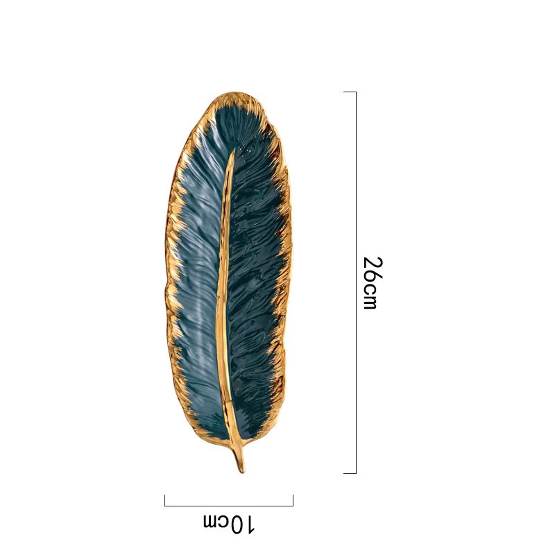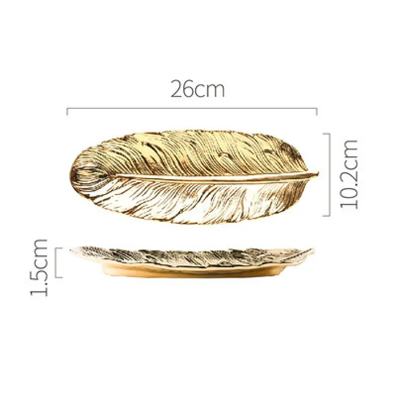 Specifications: gold-painted matte white feather small, gold-painted matte white feather large, green small feather tray, green large