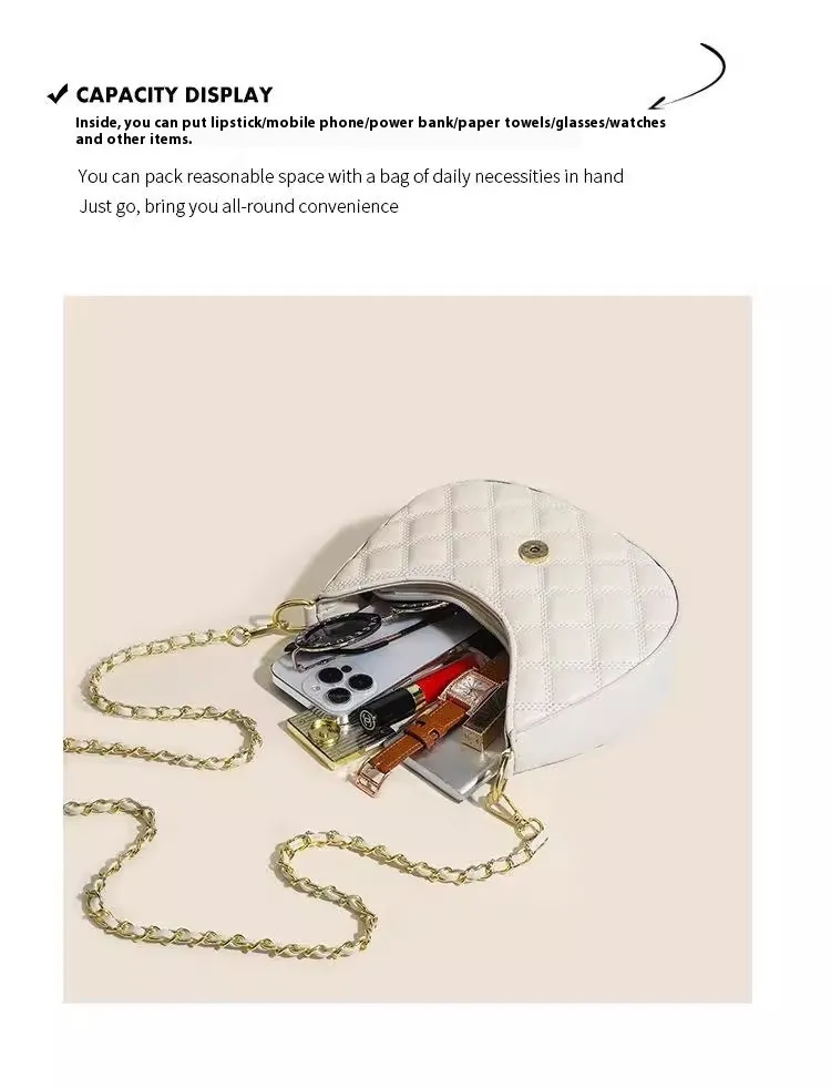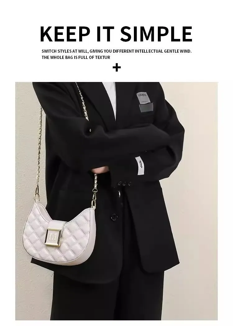 The High-End New Fashion Rhombus Single Shoulder Underarm All-Match Niche Texture Chain Messenger Bag is the ultimate accessory for women who appreciate refined elegance and versatile design. With its distinctive rhombus texture and chic chain accents, this bag is a timeless piece that effortlessly enhances any outfit. Perfect for formal occasions, casual outings, or evenings out, it’s a must-have addition to your collection.