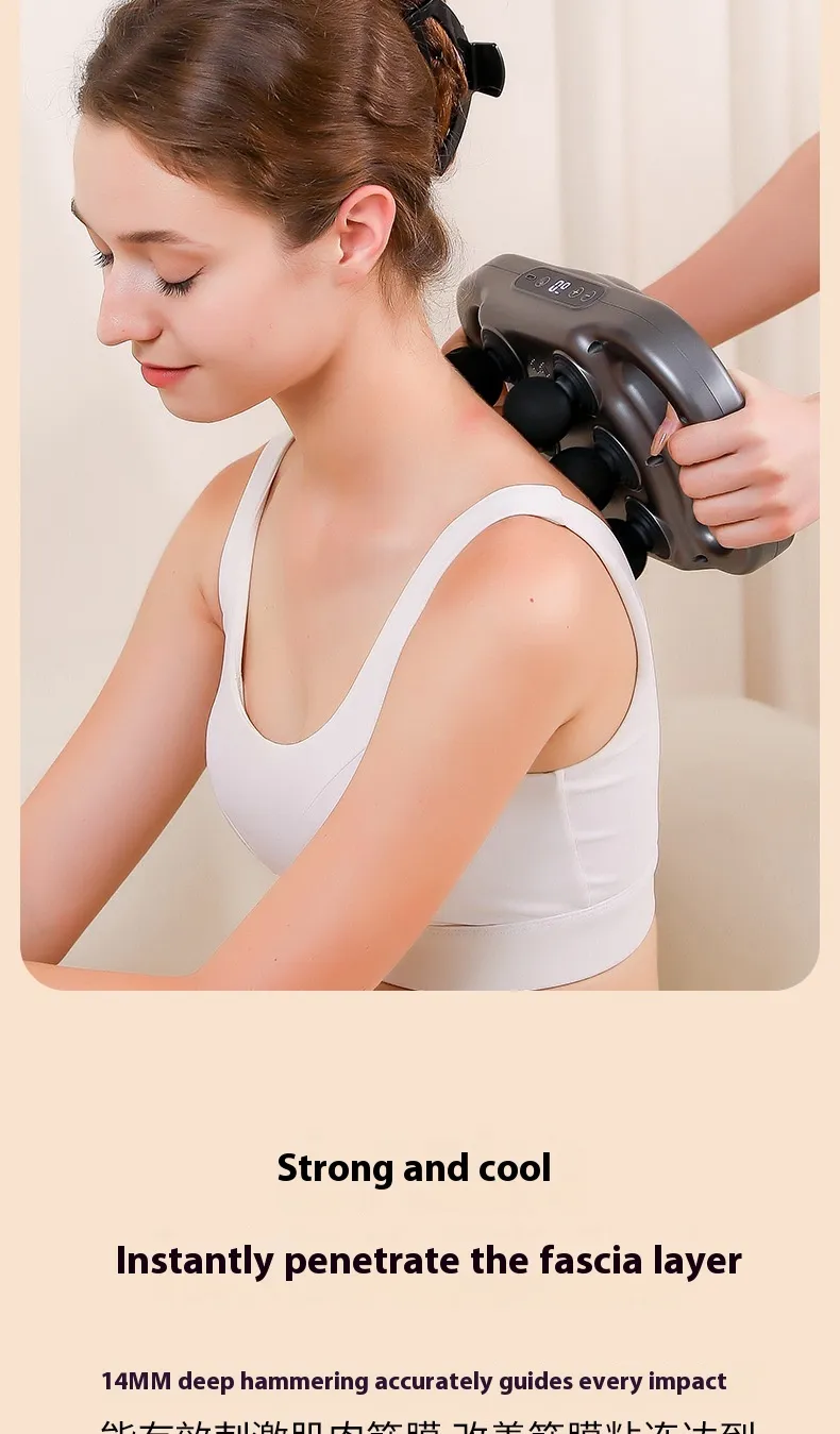 The massager uses advanced high-frequency vibration to penetrate deep into muscle tissues, alleviating pain and reducing soreness.