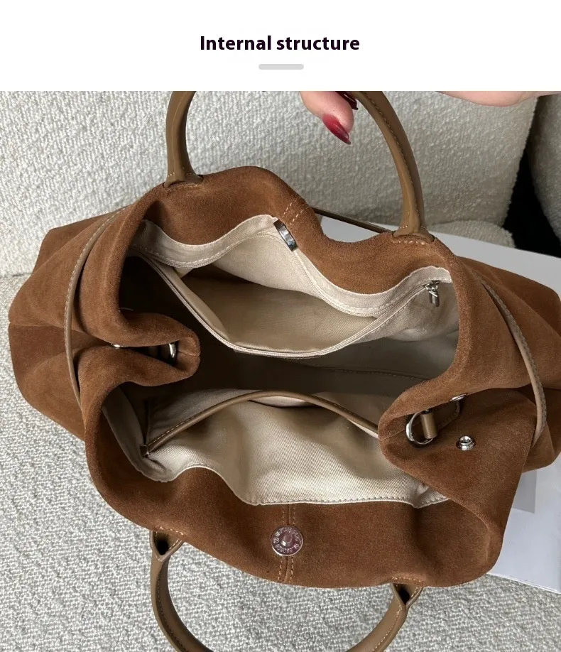 The High-grade Suede Retro Easy Matching Commuter Frosted Portable Shoulder Crossbody Bag is designed for the modern woman who values both style and convenience. Made from high-quality suede with a frosted finish, this bag exudes a sophisticated vintage charm that pairs effortlessly with any outfit. Its versatile shoulder and crossbody design offer comfort and ease for your daily commute or casual outings.