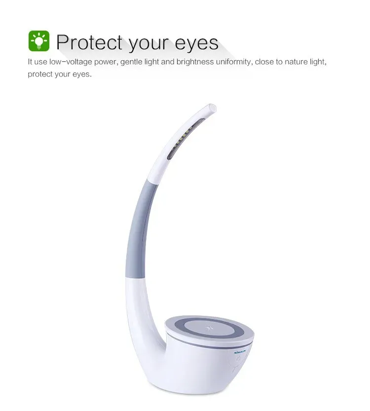 2-in-1 Functionality: A table lamp and wireless phone charger in one device, offering