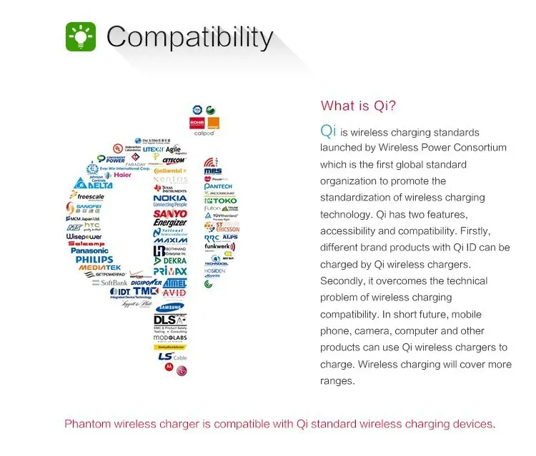 Wireless Charging: Supports Qi wireless charging for smartphones, tablets, and other compatible devices,