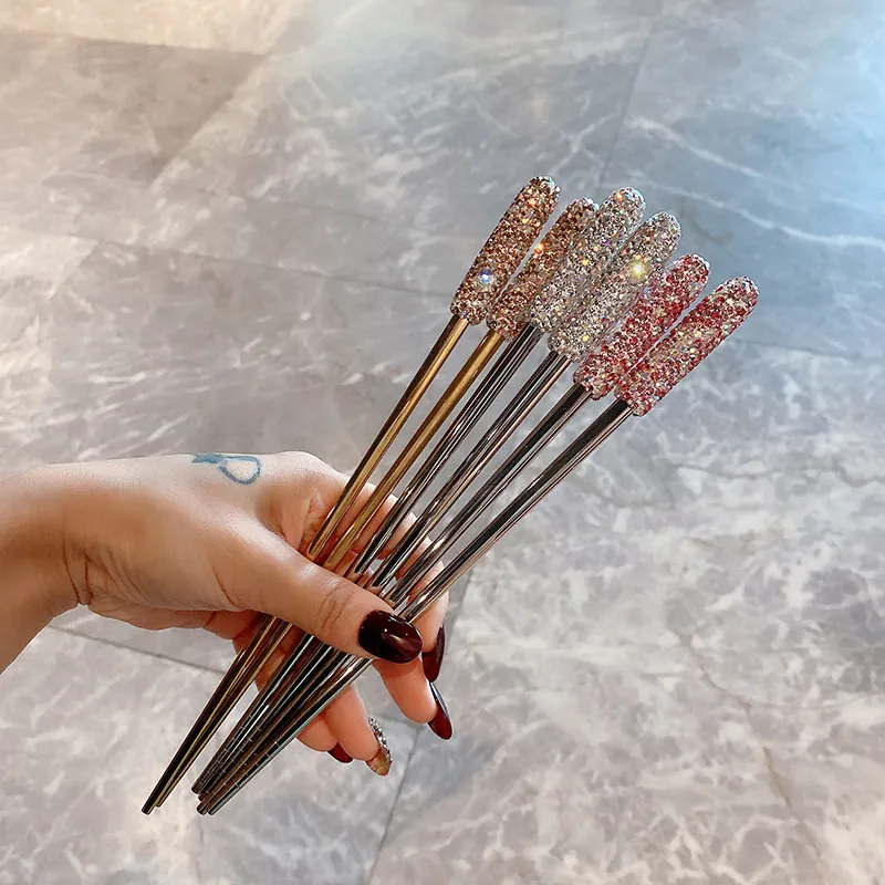 Color Classification: A pair of diamond-studded golden chopsticks, a pair of diamond-studded white chopsticks, a pair of diamond-studded red