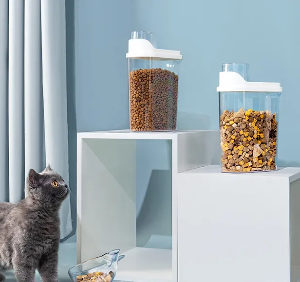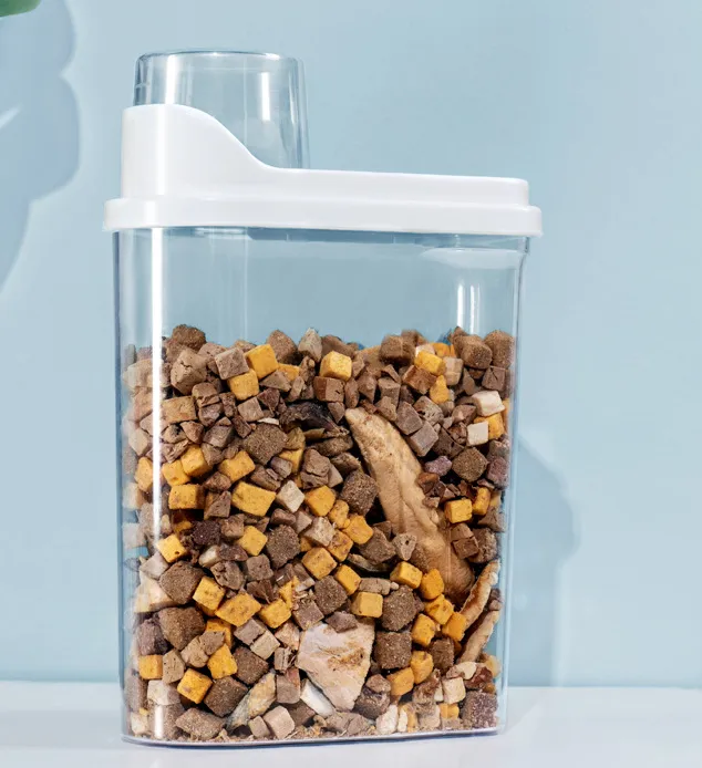- Pour your pet's favorite treats or kibble into the container.