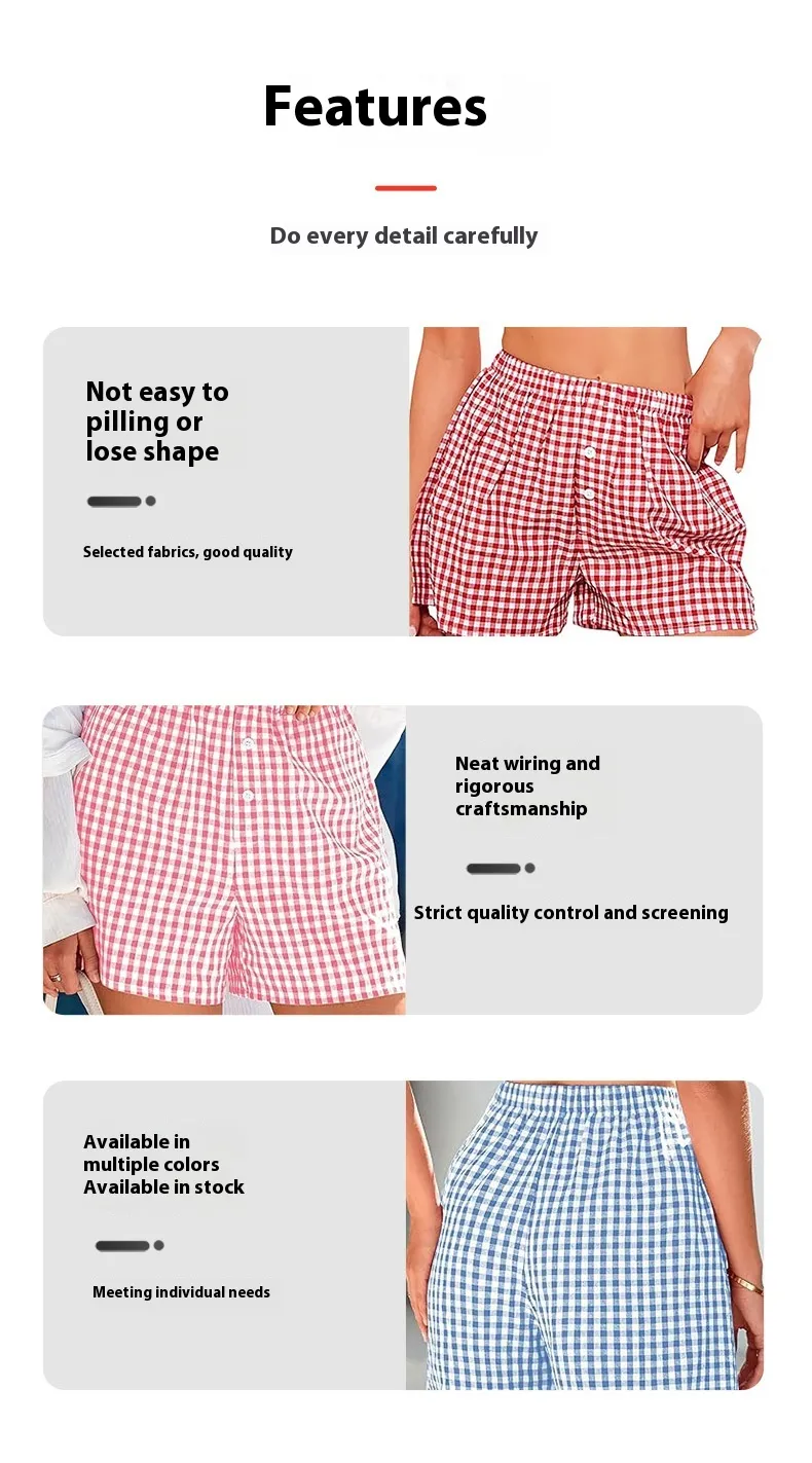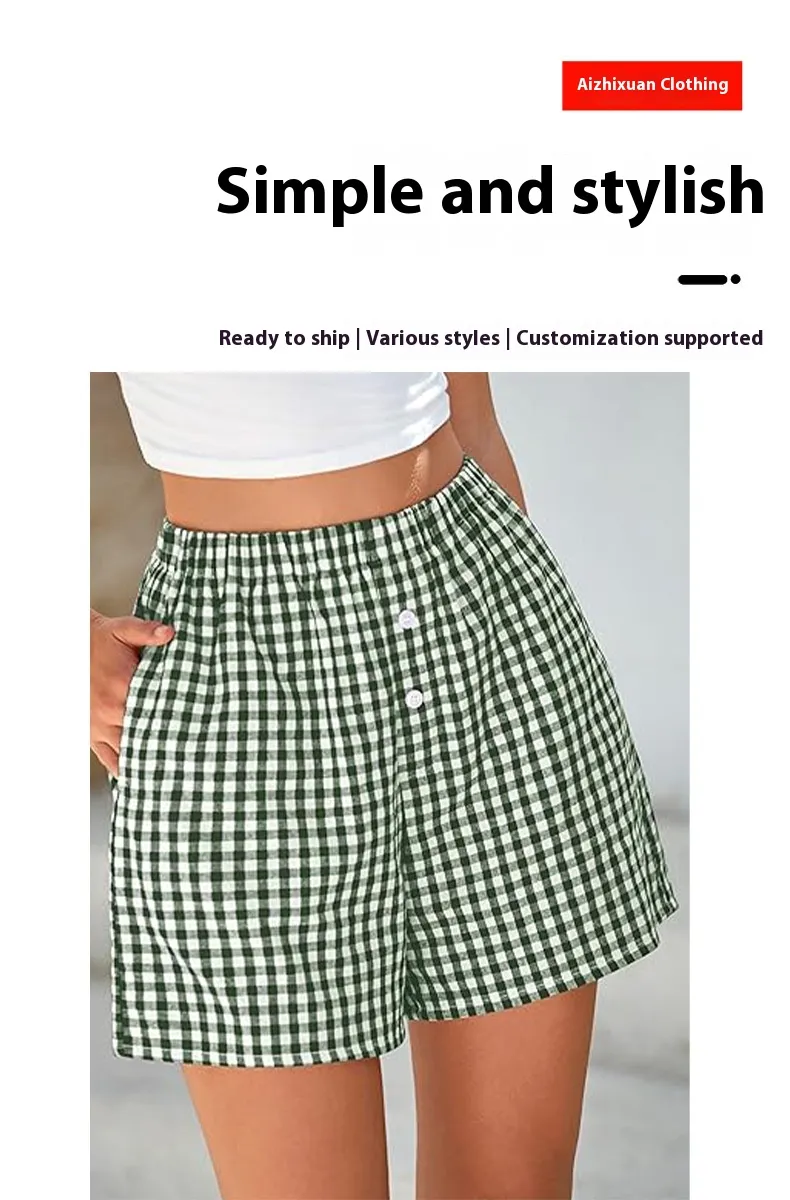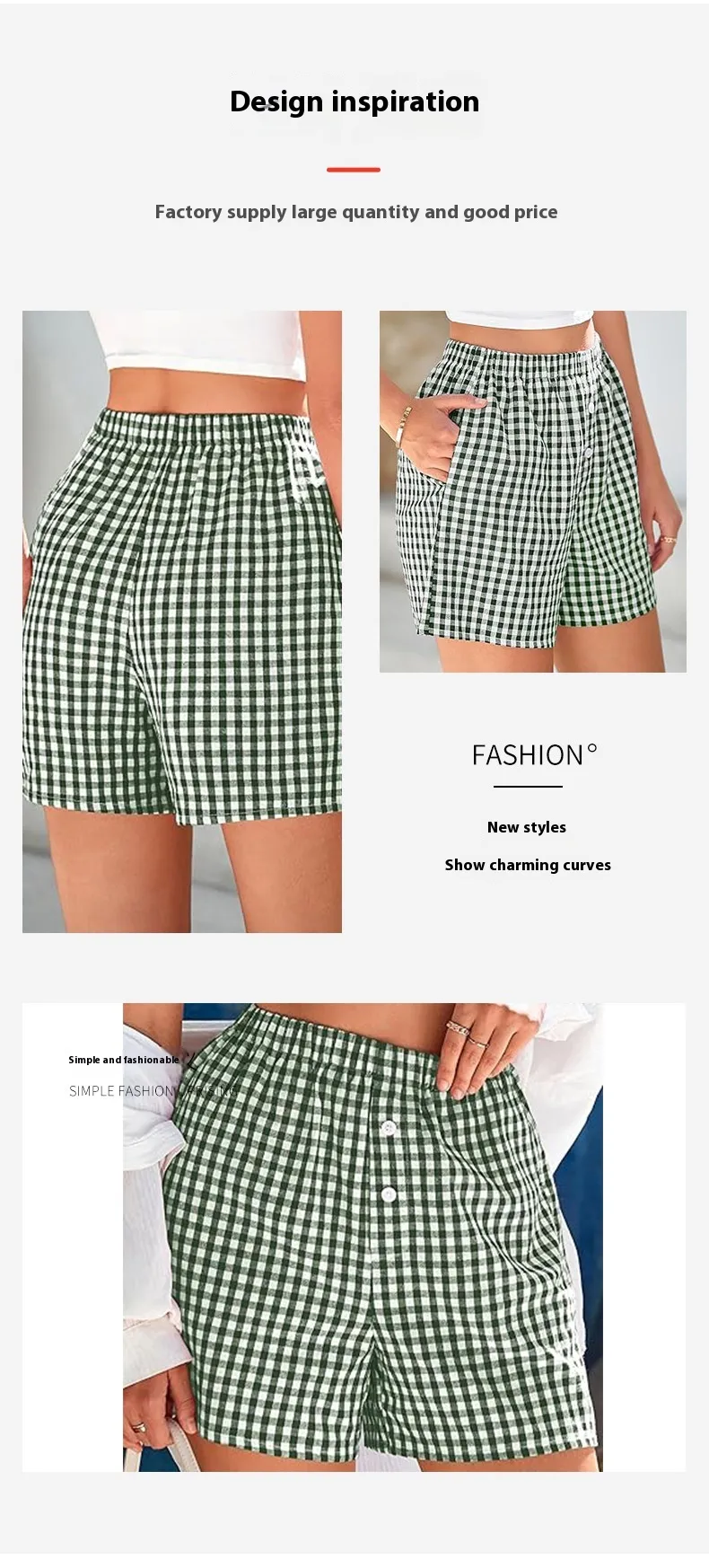 Holiday Women's Casual High Waist Loose Fashion Plaid Shorts
