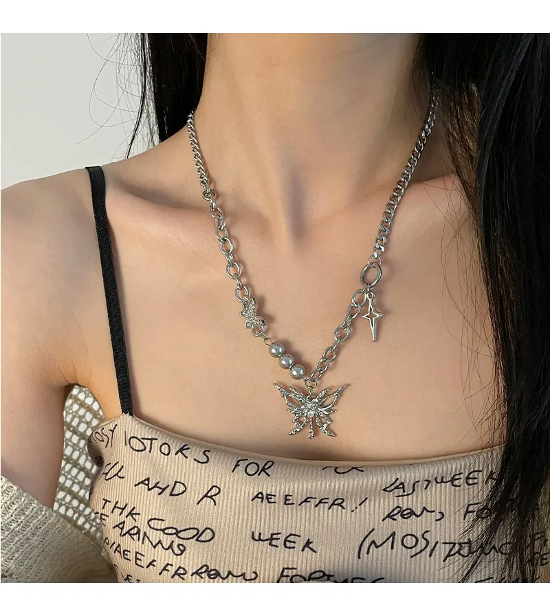 Hollow Butterfly Stitching Cross Necklace