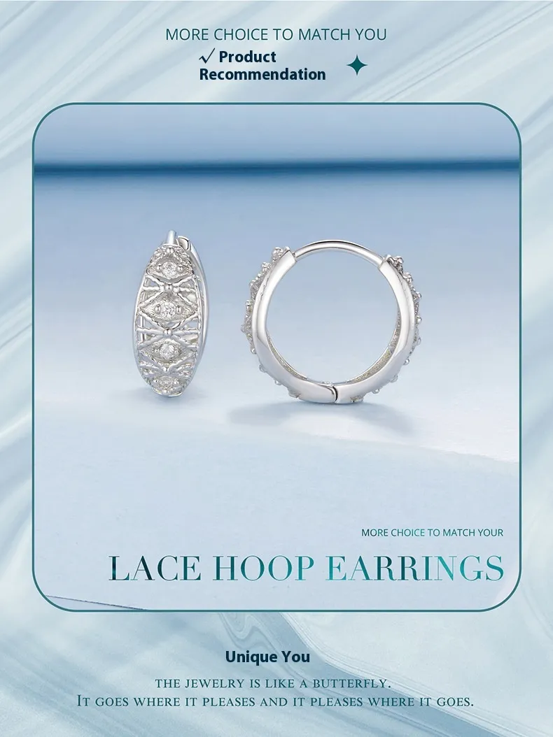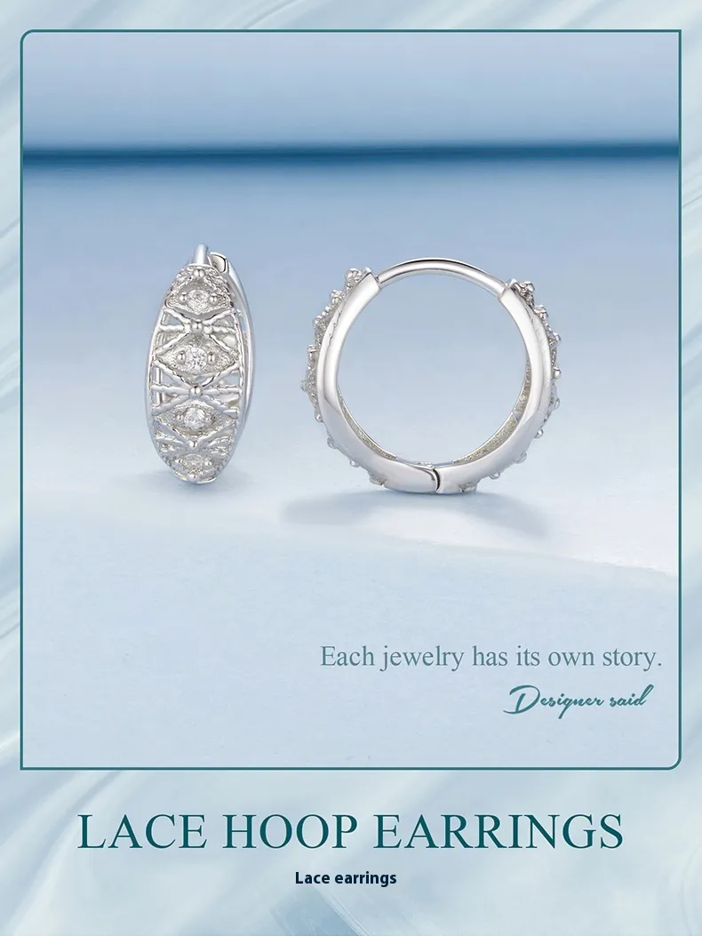 Hollow Lace S925 Sterling Silver Fashion Earrings