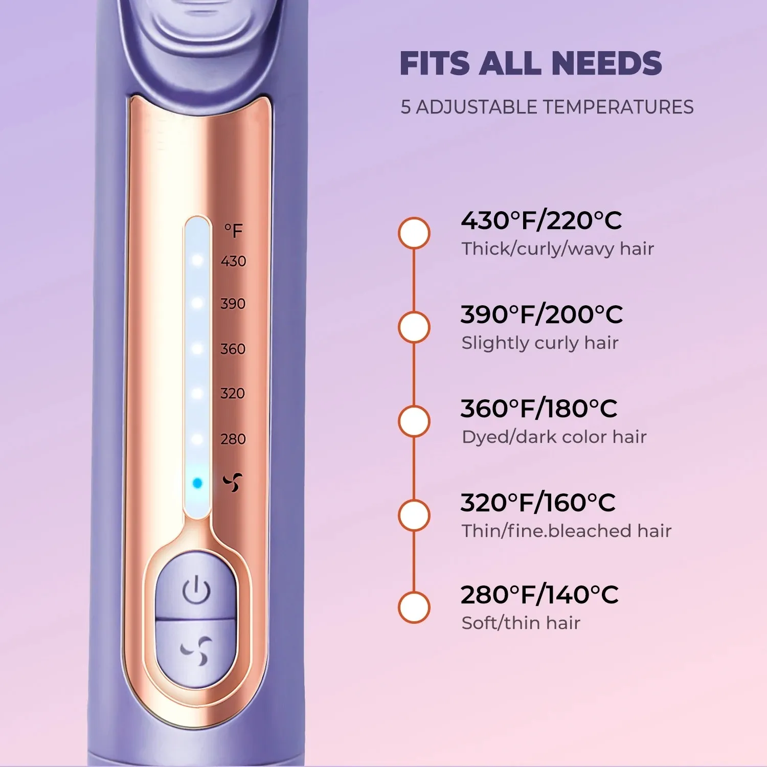 With adjustable temperature control, this device is suitable for fine, medium, or thick hair. Customizable settings ensure that you can safely style your hair without excessive heat damage, making it perfect for all hair types.