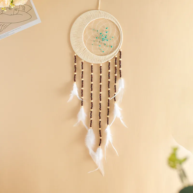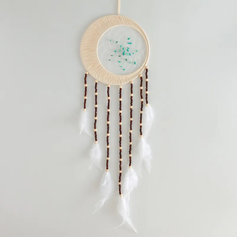 Material: Iron ring natural gravel fine cotton thread Raffia natural wood bead pure natural feather