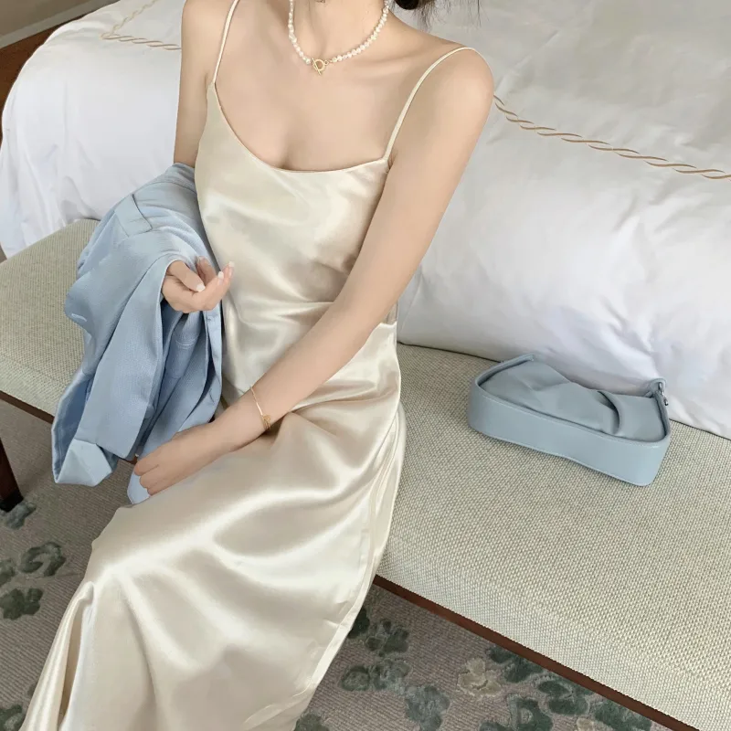 Hong Kong Flavor Satin Suspender Skirt Casual Gloss Suit