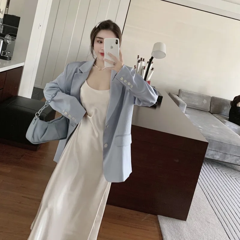 For a trendy, comfortable, and effortlessly chic look, the Hong Kong Flavor Satin Suspender Skirt Casual Gloss Suit is an ideal choice. With its glossy satin fabric, adjustable suspender straps, and versatile styling options, this skirt is perfect for those who love to combine fashion and comfort in one piece.