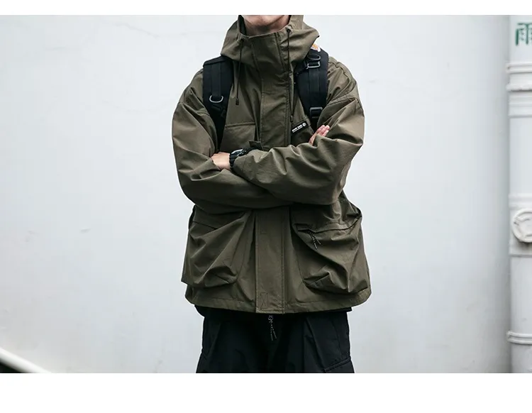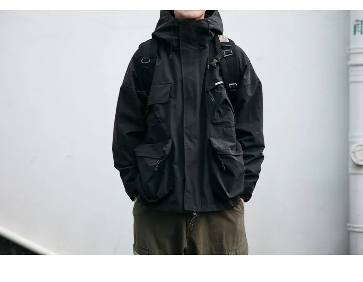 Hooded Jacket Men's Loose Three-dimensional Pocket Functional Windproof Jacket Casual Clothing