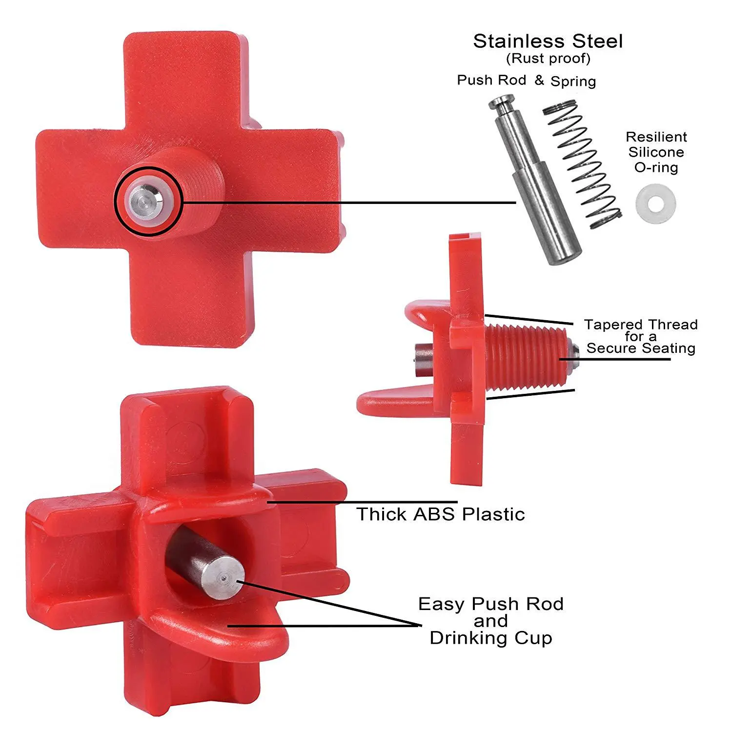 This chicken waterer is designed with convenience in mind, featuring an automatic mechanism that allows water to flow only when chickens peck at it. This helps to maintain a clean and dry environment, as water is dispensed only as needed. The simple installation process allows you to attach it easily to any water container, providing a steady and consistent water supply for your chickens. Its horizontal mounting system ensures that it fits securely, preventing leaks and ensuring that your poultry has easy access to fresh water at all times. This setup is ideal for reducing maintenance and making poultry care more efficient, whether you have a small backyard flock or a larger setup.